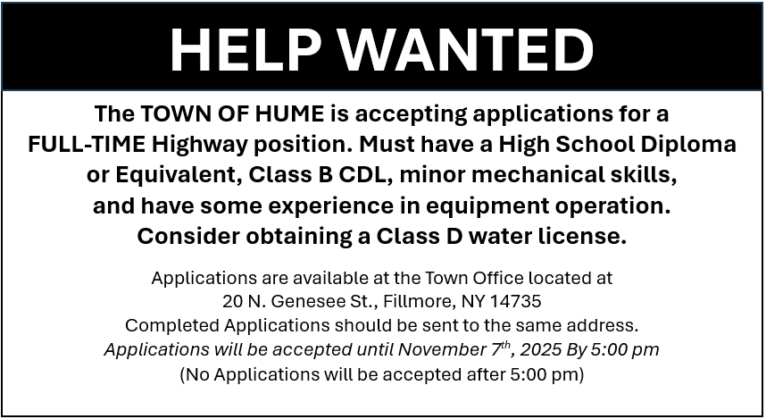 There is an open Teamsters Highway Position at the Town of Hume. See below for detail and information on how to apply!